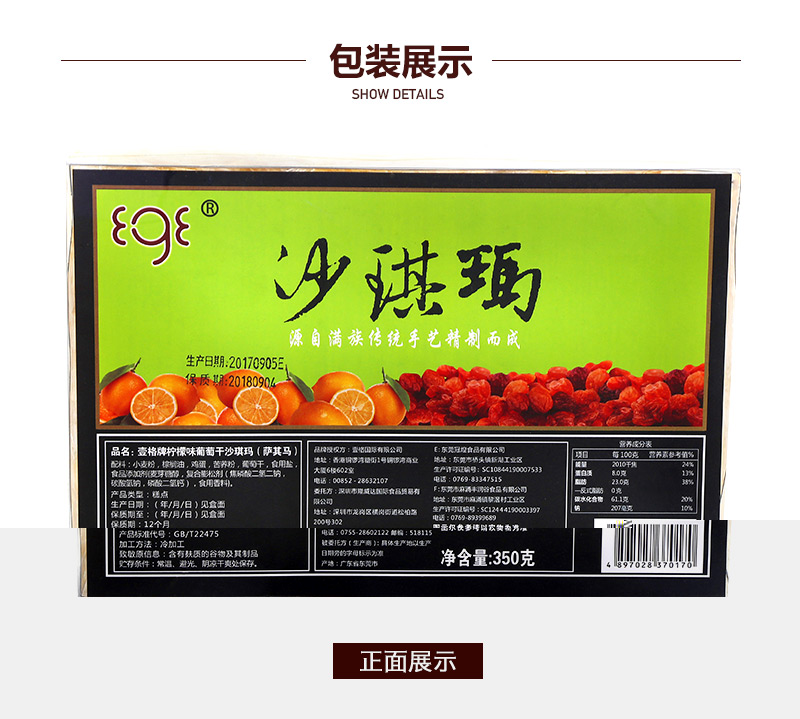 壹格牌檸檬味葡萄干沙琪瑪-350g