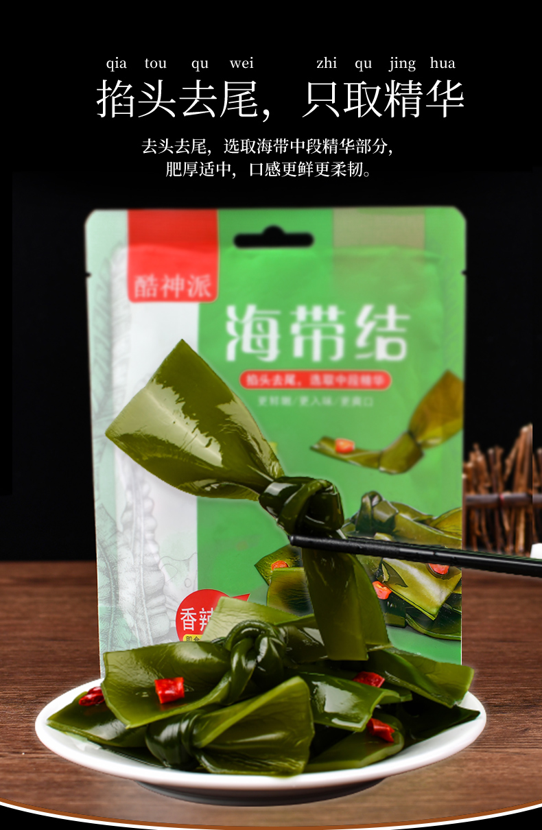 鹽漬海帶(海帶,食用鹽,脫氫乙酸鈉)(≥80%),水,大豆油,食用香精香料,食用鹽,味精,辣椒,黃酒,香辛料,5’-呈味核苷酸二鈉,檸檬酸,冰乙酸,乳酸,D-異抗壞血酸鈉,安賽蜜,山梨酸鉀。